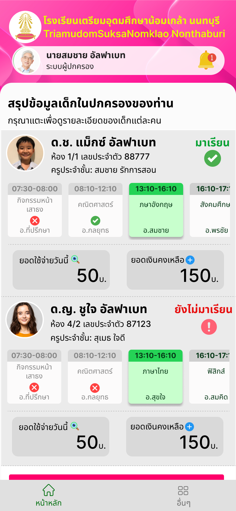 เพิ่มความสะดวก โดยผู้ปกครองสามารถเชื่อมโยงข้อมูลของนักเรียนในความปกครองทุกคน รวมกันในหน้าจอเดียว