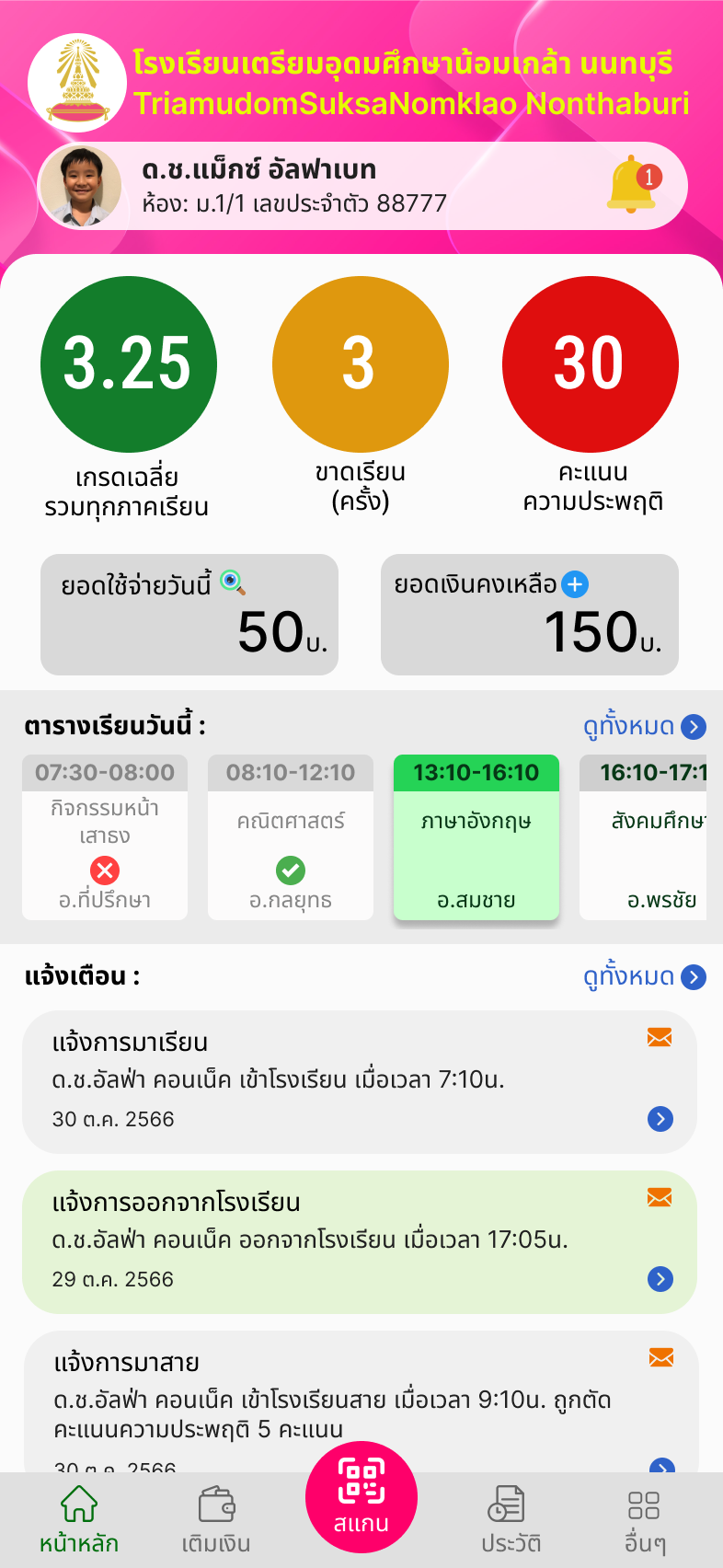 เพิ่มความสะดวกให้กับทั้งนักเรียน และผู้ปกครอง พร้อมระบบแจ้งเตือน ช่วยให้ไม่พลาดการสื่อสารสำคัญจากทางโรงเรียน